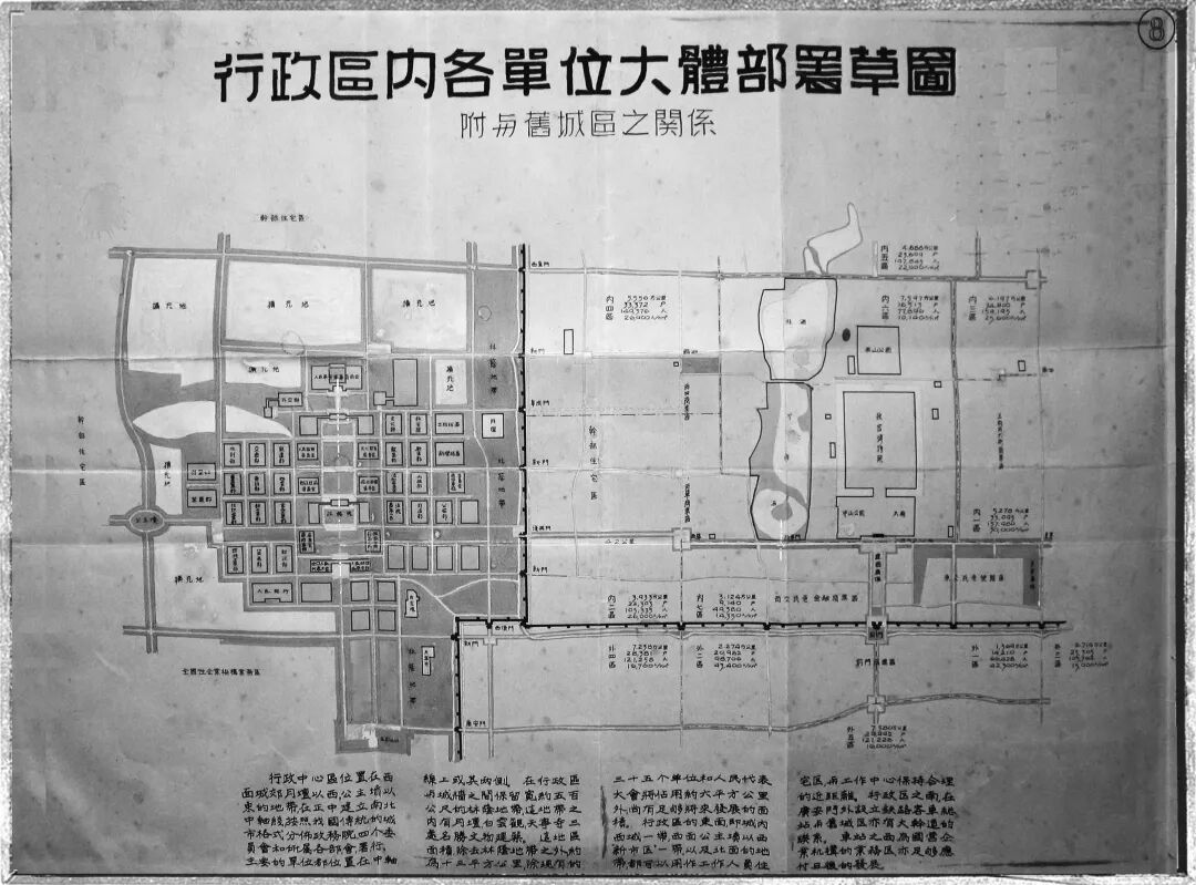 《梁陈建议》图解之“行政区内各单位大体部署草图(附与旧城区之关系)”(照片版)