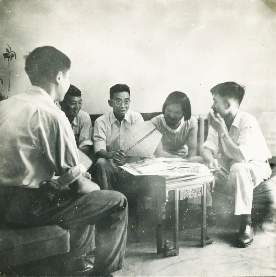 梁思成(中)与清华大学建筑系毕业生正在谈心(1959年夏)