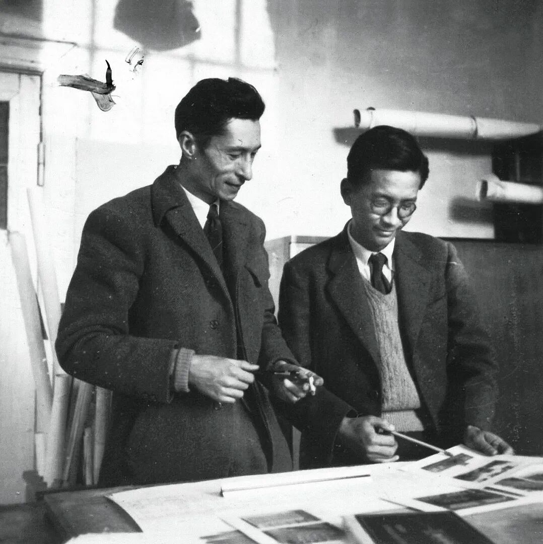 陈占祥(右)和华揽洪(左)正在讨论规划工作(1954年3月)