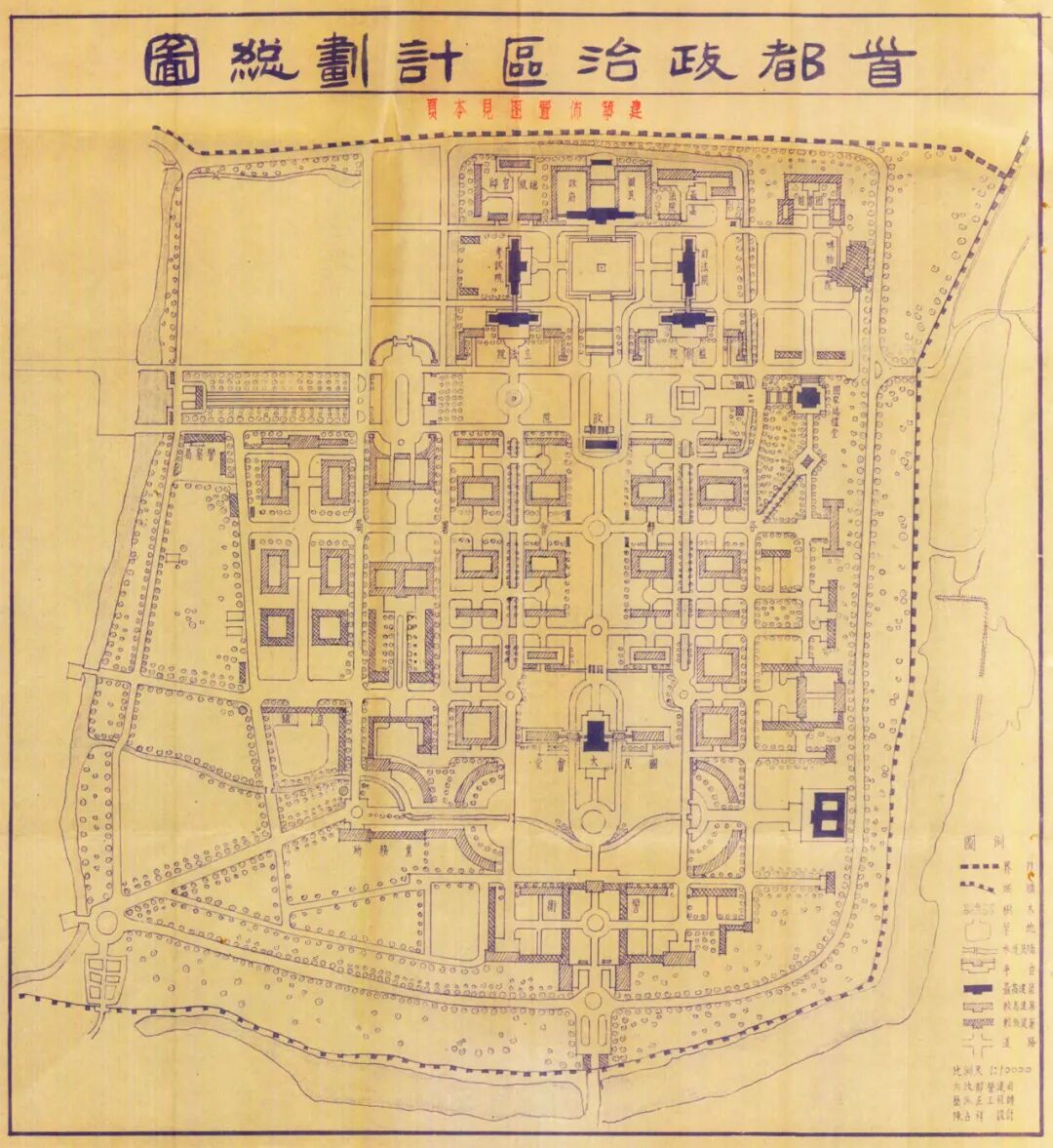陈占祥与娄道信等合作完成南京首都政治区计划总图(陈占祥设计,1947年1月)