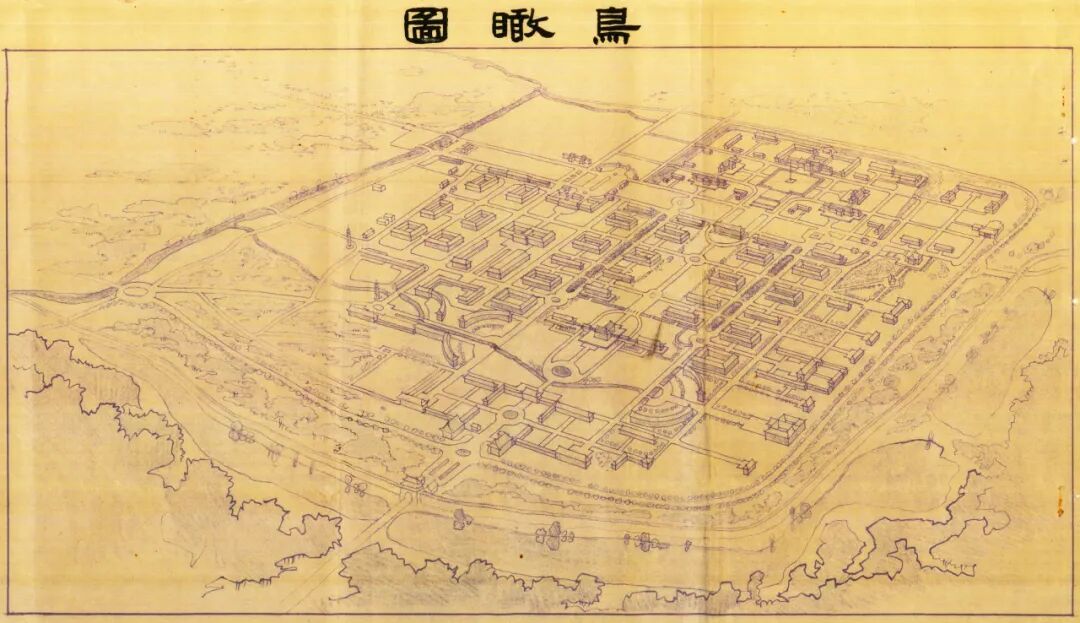 陈占祥和娄道信等合作的南京首都政治区计划之“鸟瞰图”(陈明宽绘,1947年1月)