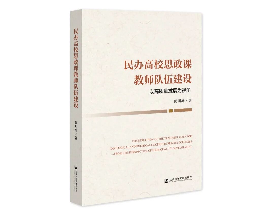正是在这样的时代背景下,阙明坤撰写的《民办高校思政课教师队伍建设研究——以高质量发展为视角》一书应运而生,由社会科学文献出版社出版。作者阙明坤长期深耕于教育政策、教育强国、高等教育等研究领域,拥有丰富的管理经验和深厚的学术造诣,在相关研究领域取得了丰硕成果,尤其是关于民办高等教育改革发展的研究成果产生了广泛影响。