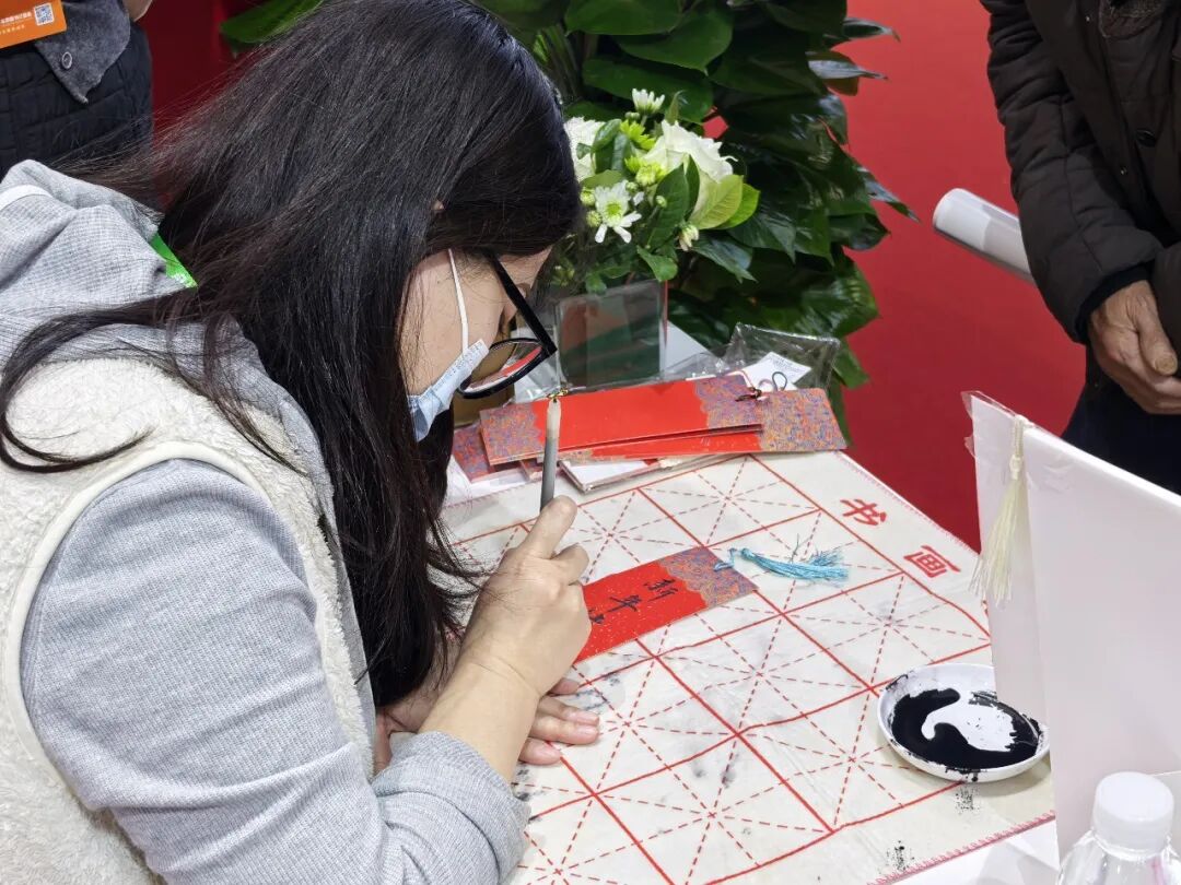 活动互动区方面,社科文献社设计中心派出书法造诣颇深的设计师现场以毛笔手书祝福语书签,200张书签在短短的一天半即一抢而空;导览台还陈列有各学科、品牌、数字产品的宣传书目供读者免费取阅;图书订货会期间关注官方视频号、小红书、抖音的读者还有机会获得新年祝福主题书签、数字产品系列周边等。这些贴心设计拉近了出版社与读者的距离,让学术出版更贴近大众。