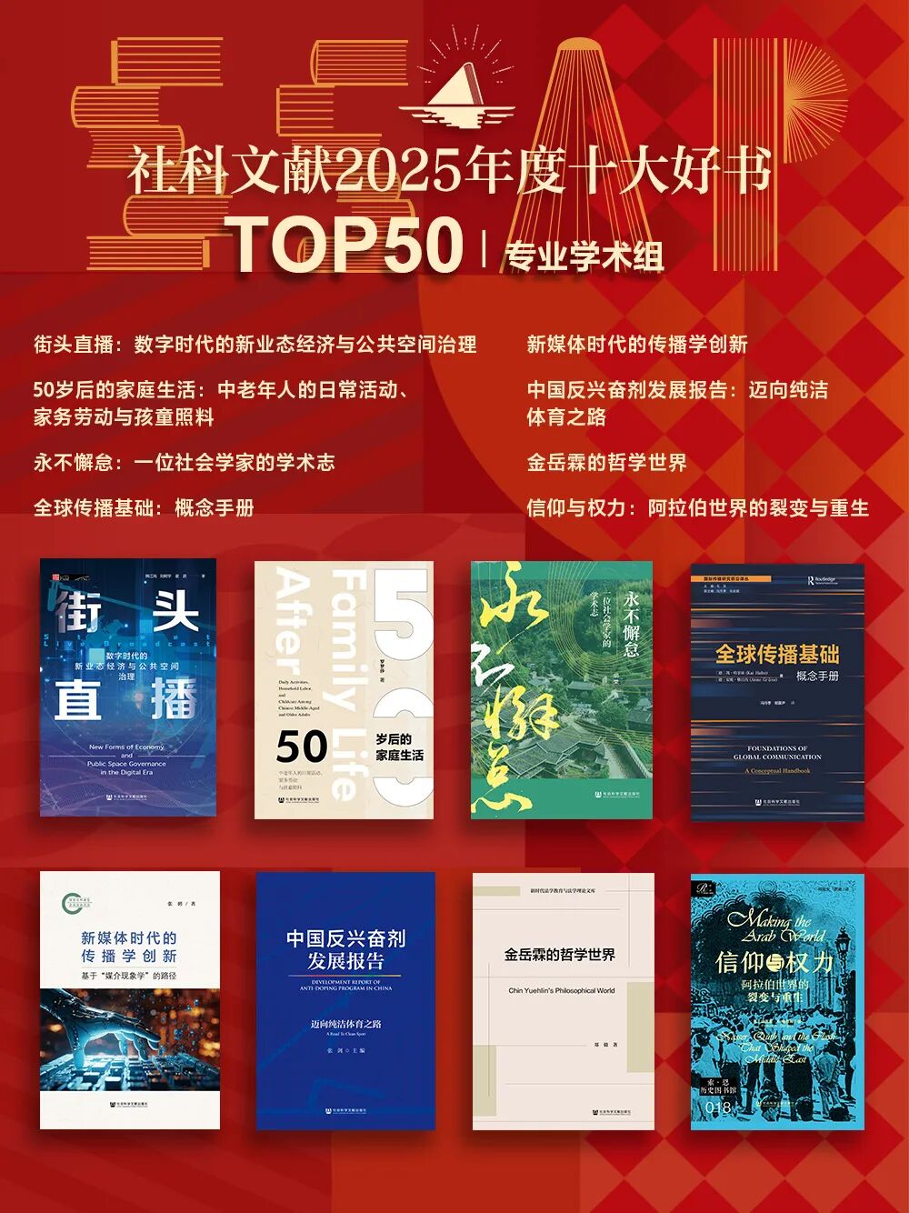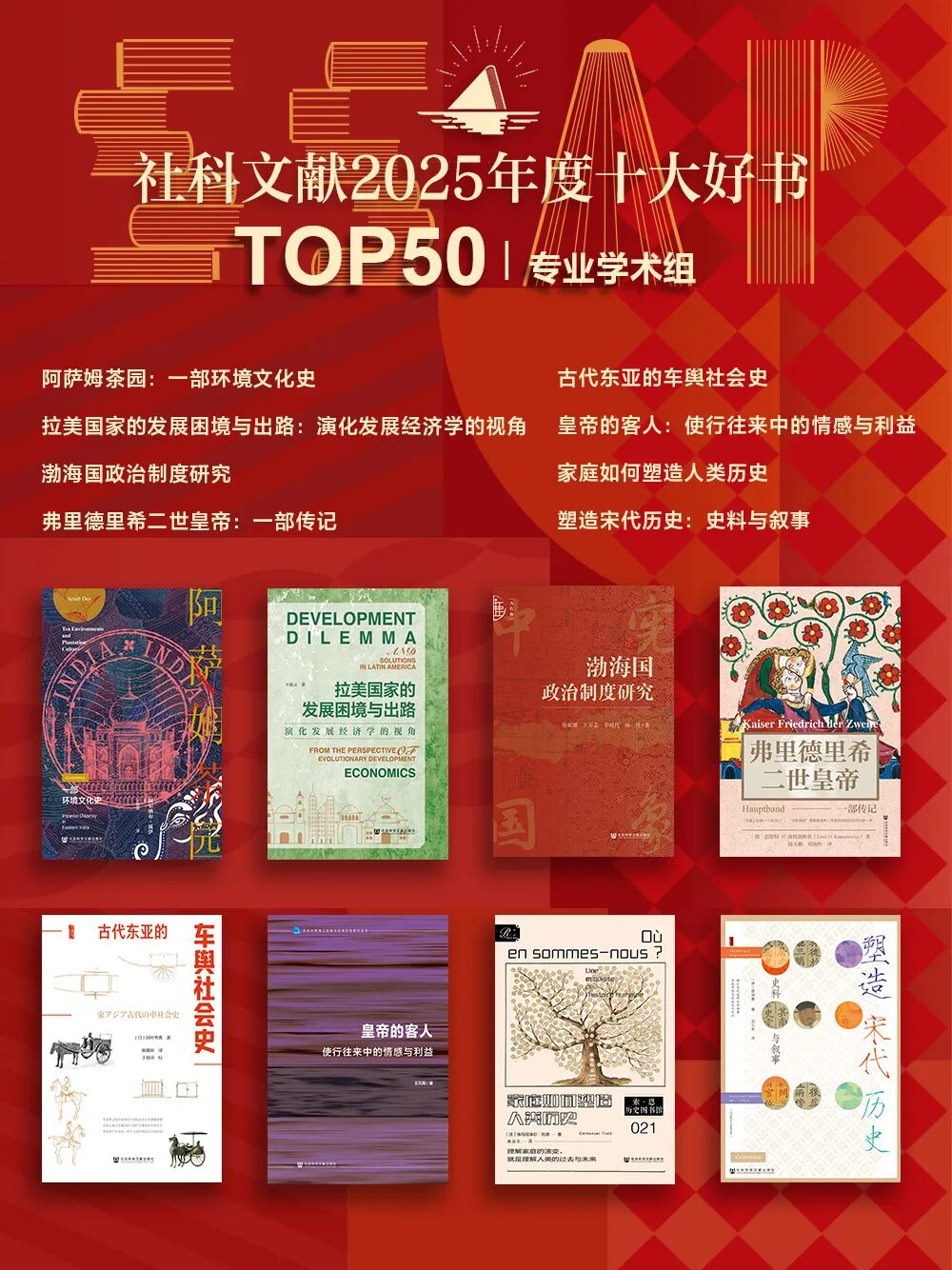 1月28日,我们邀请学界和媒体界评委,对进入终评阶段的50本图书进行现场评议及投票,最终产生第十七届社科文献十大好书(2025)。敬请期待!